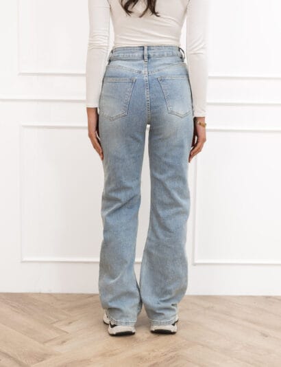 Onze wide leg jeans zijn MEGA populair vanwege de fijne stretch in de broeken. De jeans heeft een high waisted fit en sluit in de taille perfect aan waardoor deze als gegoten zit. De jeans heeft een edgy look en een super mooie wassing waardoor deze jeans onmisbaar is!