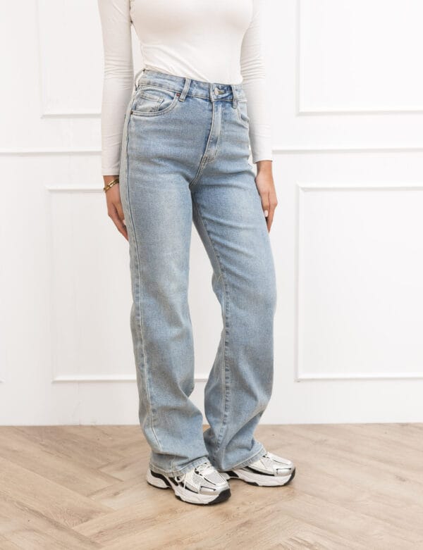 Onze wide leg jeans zijn MEGA populair vanwege de fijne stretch in de broeken. De jeans heeft een high waisted fit en sluit in de taille perfect aan waardoor deze als gegoten zit. De jeans heeft een edgy look en een super mooie wassing waardoor deze jeans onmisbaar is!