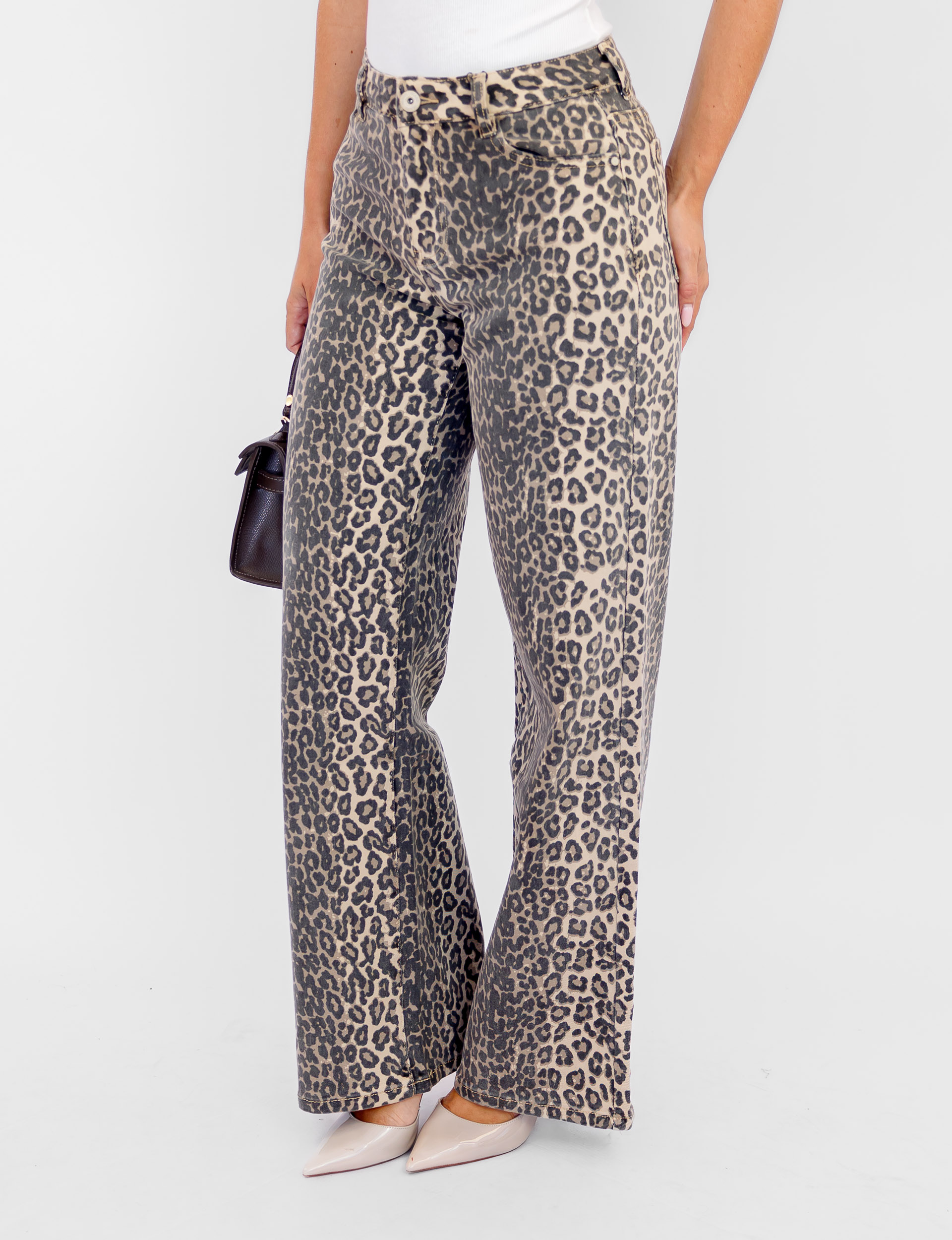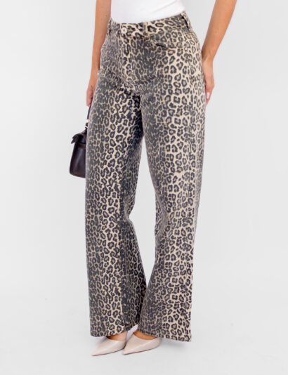 De Liena panter dad fit Jeans is dé jeans voor een stijlvolle, comfortabele look. Met een toffe panterprint en stretch materiaal biedt deze jeans zowel stijl als comfort. Het mid/high waist model zorgt voor een perfecte pasvorm. Combineer de jeans met een oversized blazer en sneakers voor een casual outfit die je overal kunt dragen!
