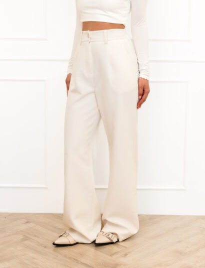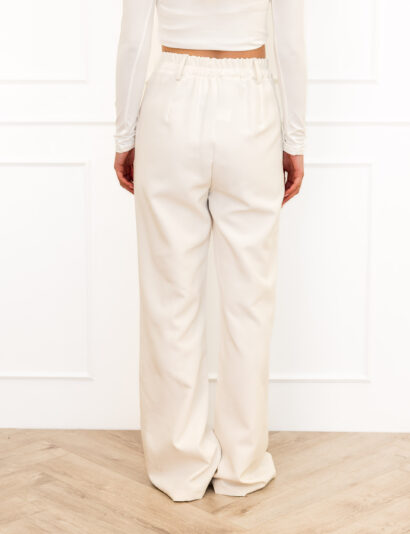 De Britt pantalon off white is een elegante en comfortabele broek met een elastische taille en een knoopsluiting. Deze pantalon is ideaal voor elke gelegenheid en te combineren met het bijpassende britt gilet voor een complete outfit. Verkrijgbaar in verschillende kleuren, de off white variant is perfect voor een frisse, chique look!