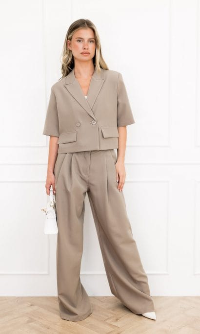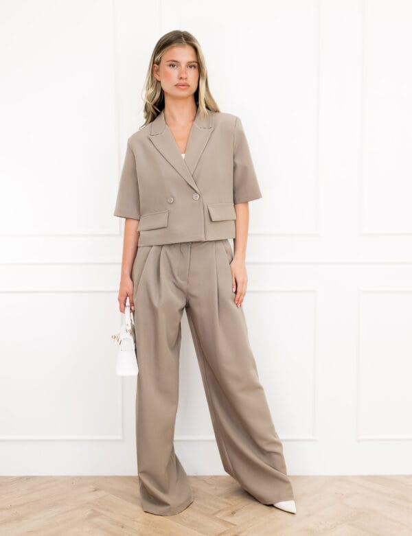 Ga voor een stijlvolle look met de nori pantalon taupe! Deze elegante pantalon heeft een wijde, uitlopende pijp en een chique knoopsluiting voor een perfecte pasvorm. Verkrijgbaar in drie trendy kleuren, waardoor je eindeloos kunt combineren. Draag ‘m met de bijpassende nori blazer voor een power suit waar je mee opvalt! 💖✨