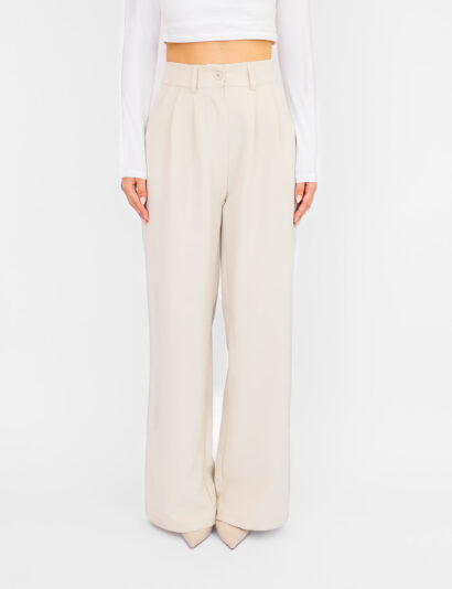 Deze beige pantalon voor dames is een echte essential in je garderobe. De broek sluit mooi aan in de taille en loopt elegant uit in een wijd vallende pijp. Perfect voor een moderne, flatterende look. Gemaakt van een soepel vallende stof die comfortabel zit én luxe oogt. Combineer de pantalon met onze bijpassende gilet en halter top voor een stijlvolle co-ord set, of draag ‘m met jouw eigen favo items voor eindeloze outfit combinaties. De pantalon is precies wat je zoekt van casual tot classy.