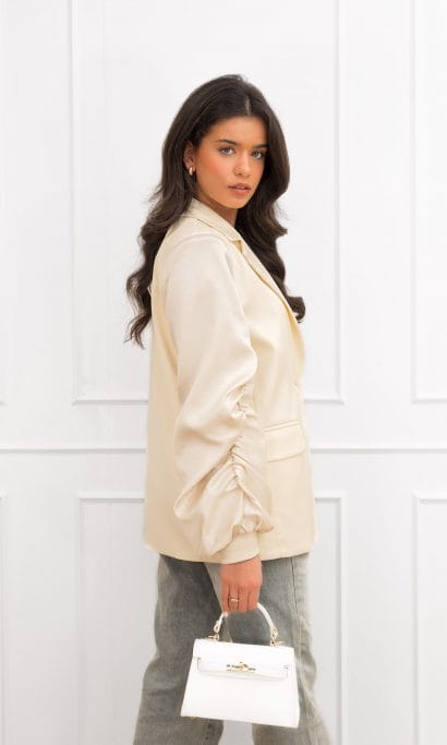 Het model is 1.63 m en draagt maat S, draagt normaal gesproken maat XS.