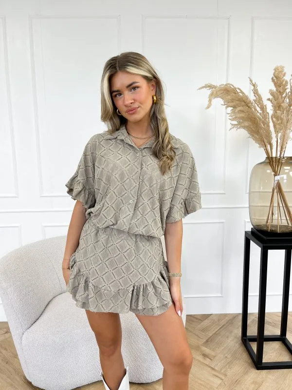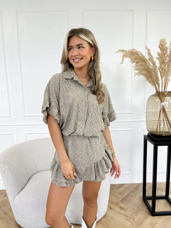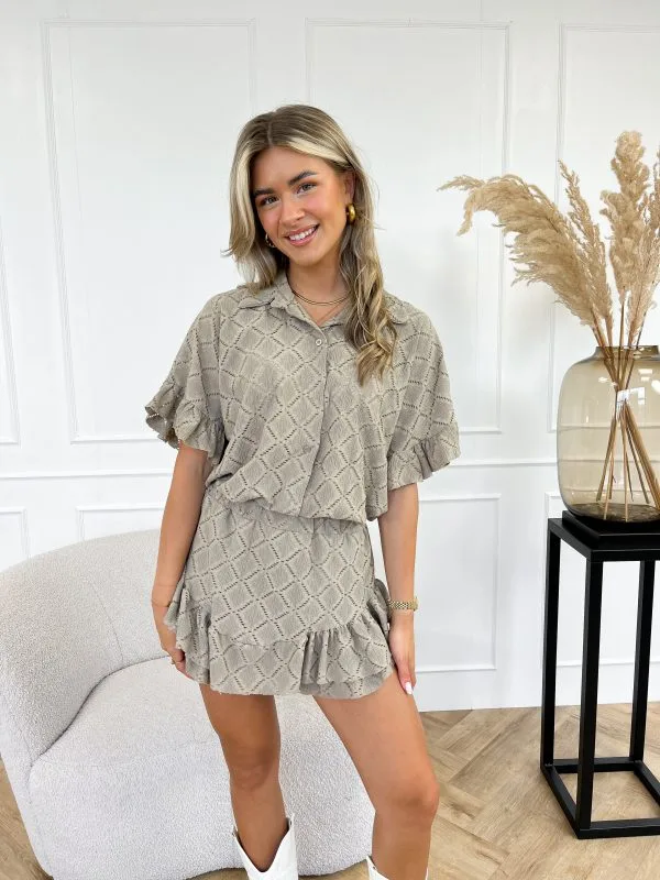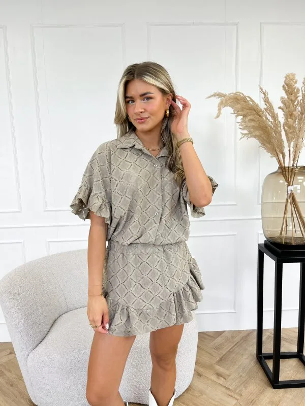 De skort is gemeten als: lengte 35 cm en taille 64 cm.