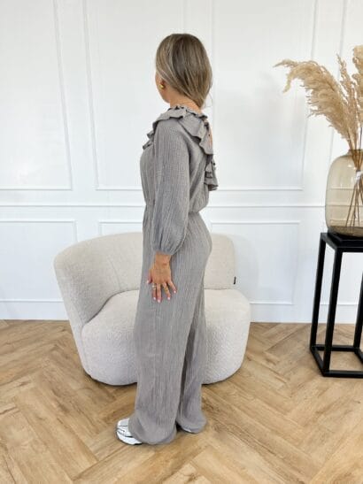 De jumpsuit is gemeten als: lengte 153 cm en oksel tot oksel 47 cm.