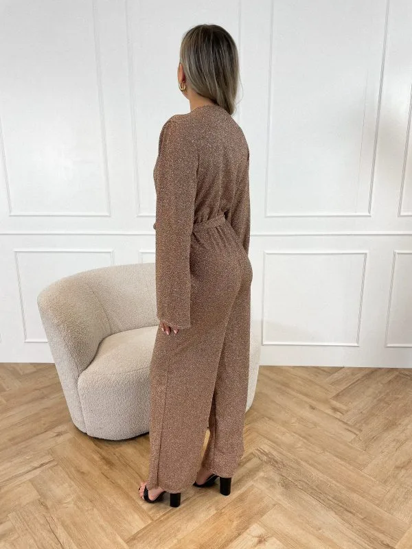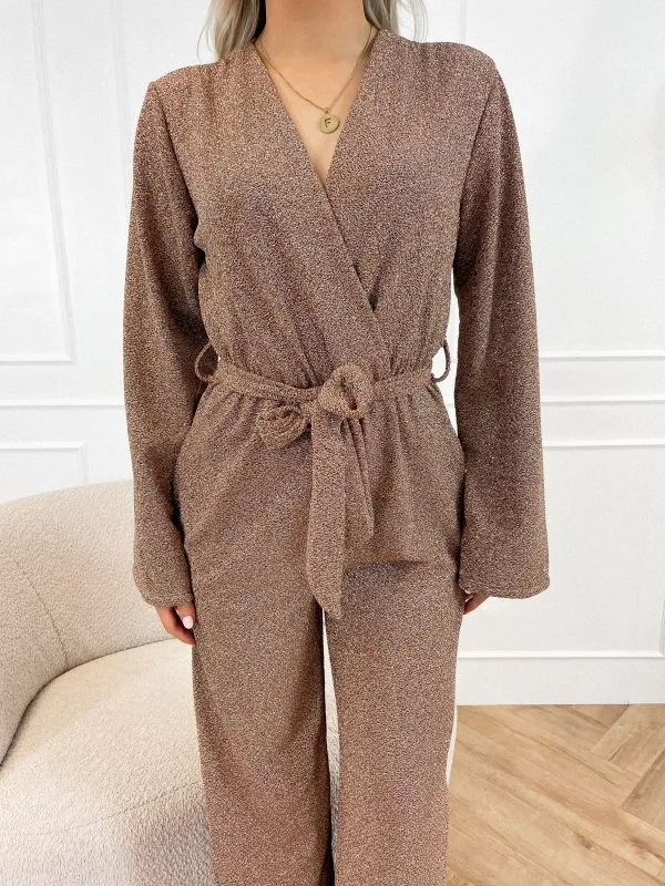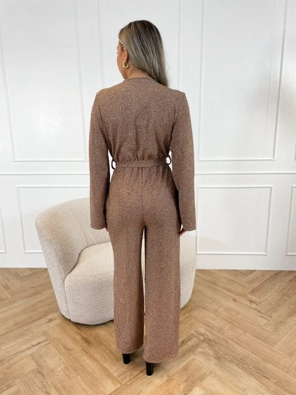 De Ruby jumpsuit heeft gekleurde glitters door de jumpsuit heen en is perfect voor de feestdagen of een andere gelegenheid. De jumpsuit heeft een elastische band in de taille met een bijpassende ceintuur.