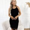 De Shana set is een tweedelige set met een broderie print. De top heeft een v hals, 3 kwart mouwen en een elastieken band aan de onderkant. De skort heeft ruffles, een elastische band in de taille en is gevoerd van binnen.