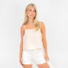 Meet de Belicia Body in zwart. Jouw nieuwe go to voor een effortless look. Deze body is alles behalve basic: met verstelbare spaghetti bandjes, een subtiele structuurprint én een speelse ruffle aan de voorkant geef jij je outfit instant flair. Perfect om te combineren met je favoriete jeans of een short.  Verkrijgbaar in 4 kleuren mix, match & shine!