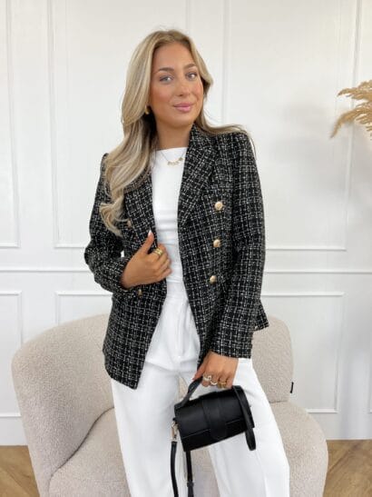 Het model is 1.63 m en draagt maat S, draagt normaal gesproken maat XS.