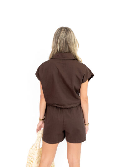 De Demi denim set in bruin is je nieuwe favoriete summer outfit! De set bestaat uit een comfy short met elastische taille en een top met knopen aan de voorkant. De top kun je aan de onderkant met twee touwtjes tailleren voor een extra vrouwelijke touch. Deze set is verkrijgbaar in drie kleuren en is de ultieme keuze voor een casual zomerdag. Draag ‘m met je favoriete slippers en je hebt een onbezorgde, maar toch superstylish look. Of je nu naar het strand gaat of een city trip maakt, deze set is alles wat je nodig hebt voor de perfecte summer vibe!