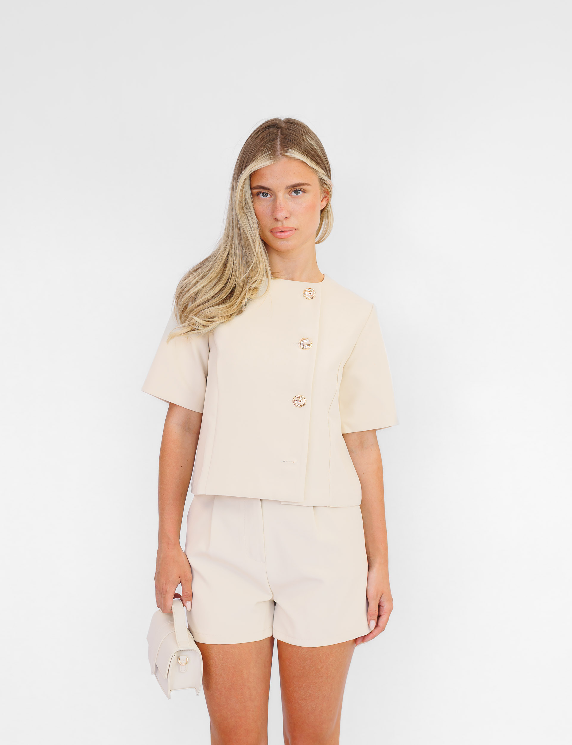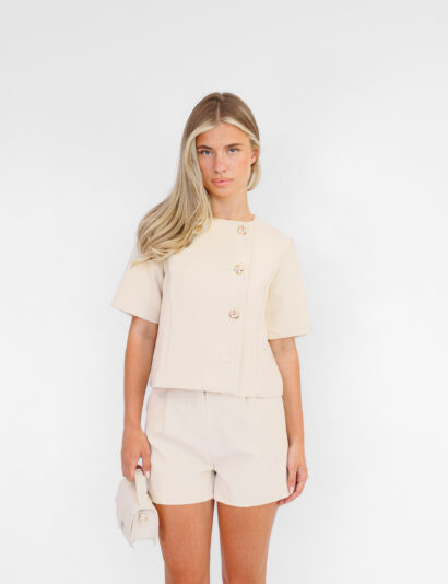 De Francis Blazer Beige is dé ultieme mix van elegant en effortless. Met z’n korte mouwen en luxe goudkleurige knopen is deze blazer allesbehalve basic. De neutrale beige tint past bij alles en maakt dit item ideaal voor een classy summer look.