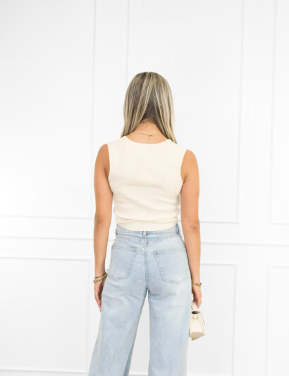 De top in maat S/M is gemeten als: lengte 46 cm en oksel tot oksel 35 cm.