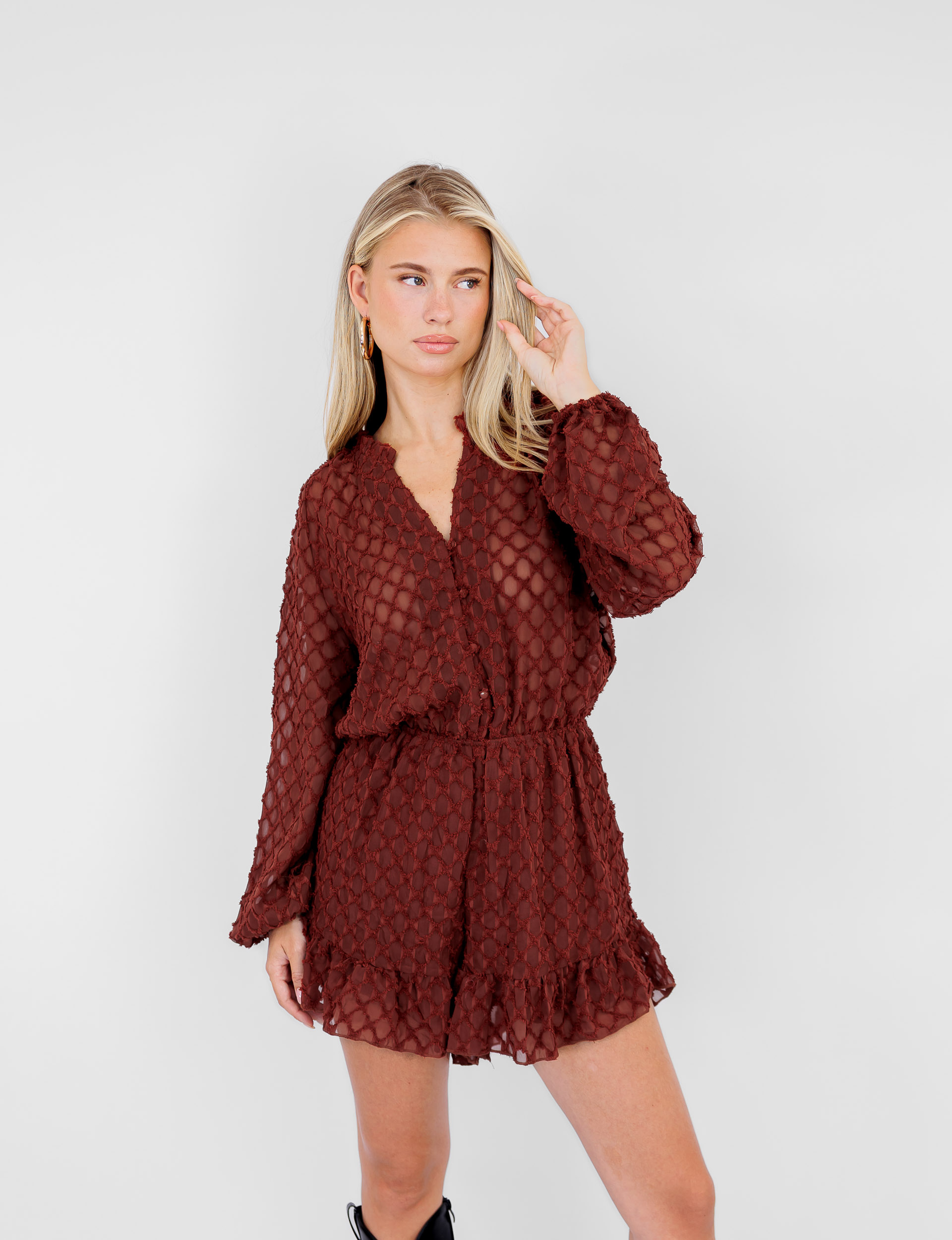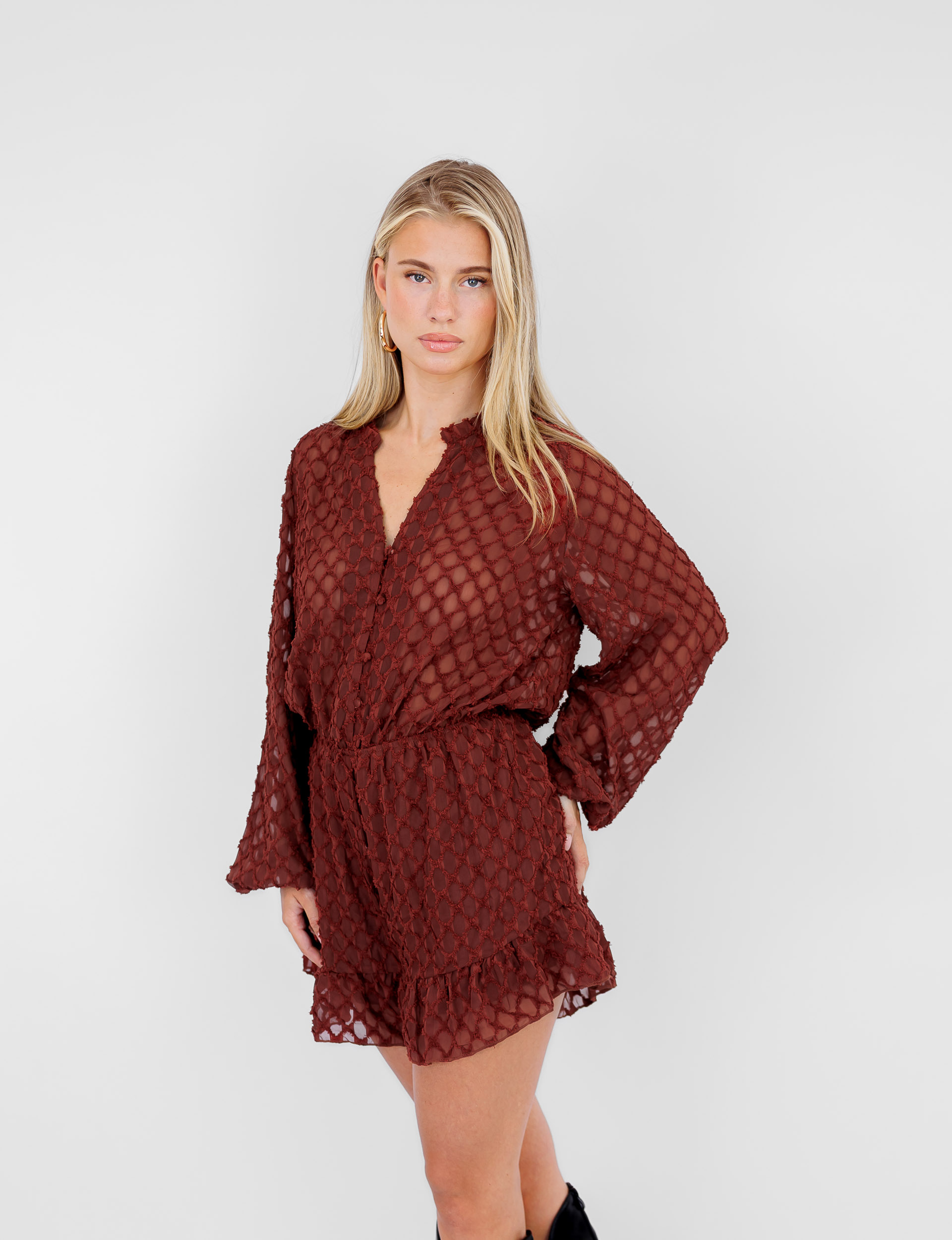 Productomschrijving: Het model is 1.65 m en draagt maat S.