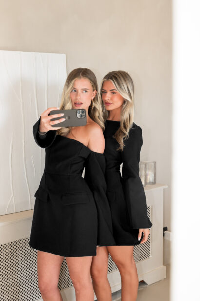 De It girl dress zwart is de perfecte jurk voor een speciale gelegenheid. De stijlvolle jurk heeft een uitlopend model, is off shoulder en is afgewerkt met 2 sierzakken op de voorzijde en heeft een elegante uitlopende mouw.