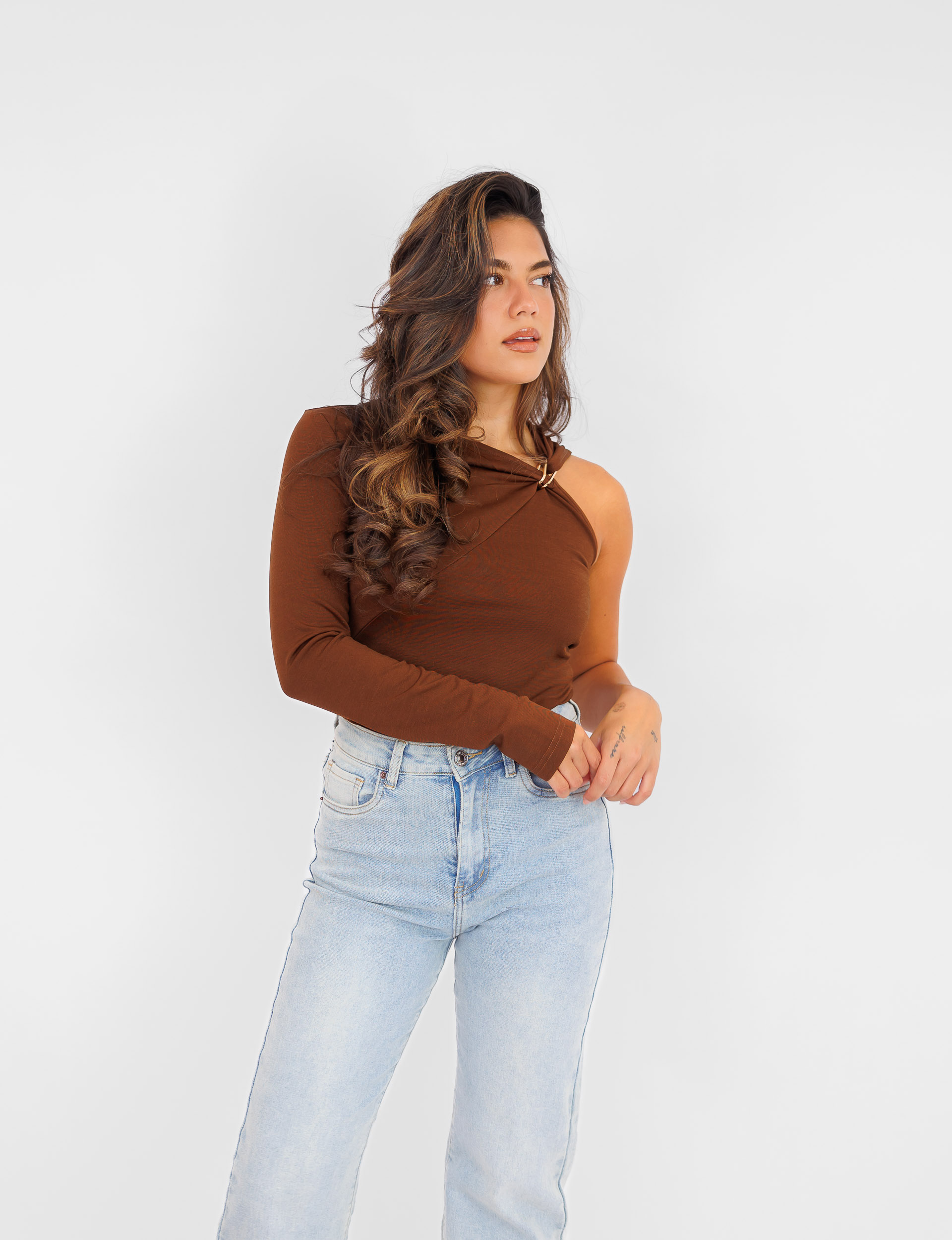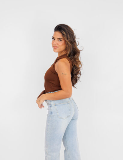 Maat L is gemeten als: lengte 55 cm en oksel tot oksel 44 cm.