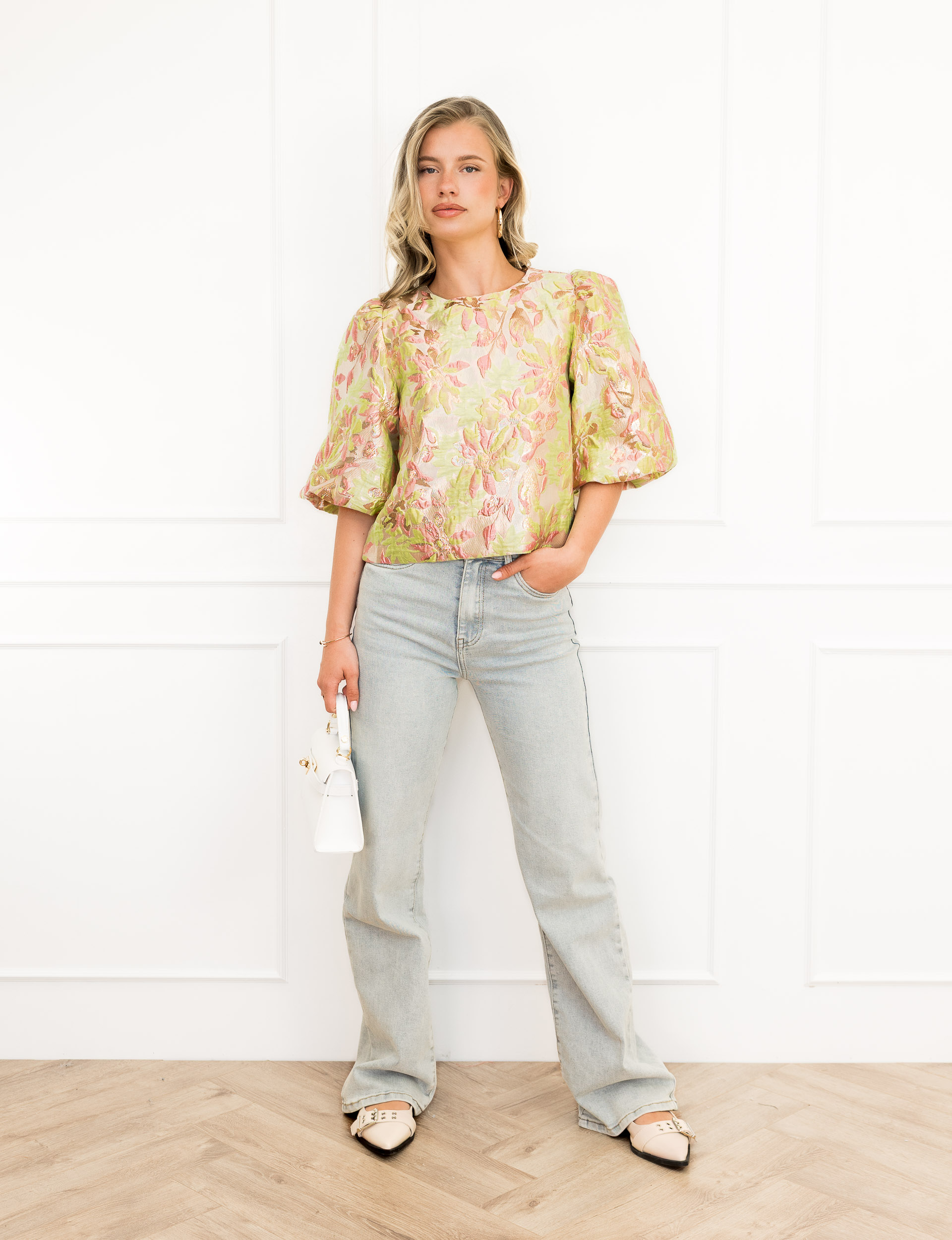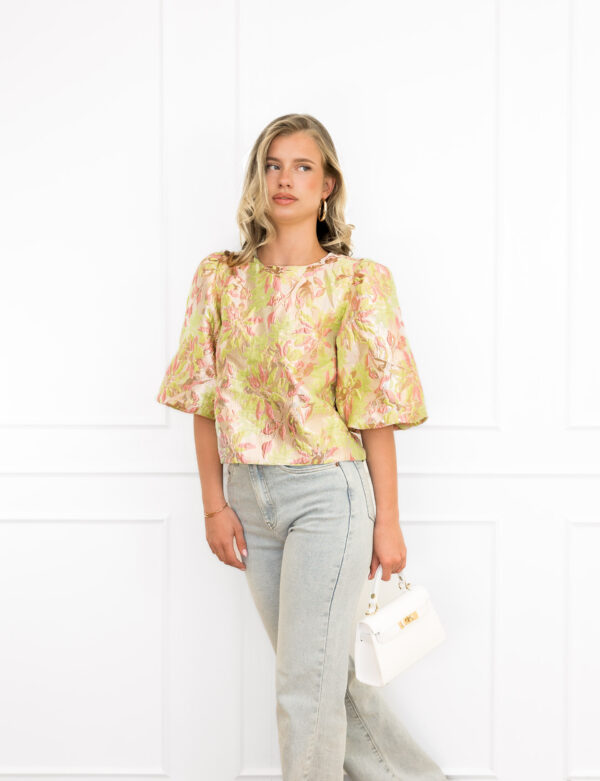 De Jasmina top groen is een trendy en veelzijdige top die je outfit meteen naar een hoger niveau tilt! Deze top heeft een prachtige jacquard print in 3 verschillende tinten groen en is voorzien van korte pofmouwen voor een vrouwelijke en speelse uitstraling. Of je nu een casual of meer chique look wilt creëren, de Jasmina top groen is ideaal voor elke gelegenheid. Combineer deze top met een rok, broek of jeans en je hebt een modieuze look die de aandacht trekt. Verkrijgbaar in 2 kleuren voor de perfecte match met jouw stijl!