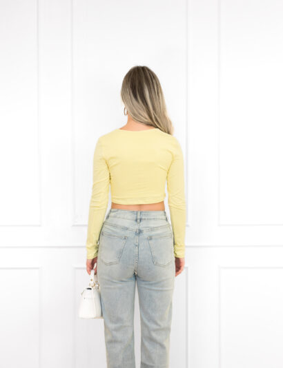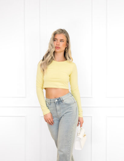 De Joy cropped top in butter yellow is dé perfecte basic voor onder elke outfit. De comfortabele pasvorm maakt deze top onmisbaar in jouw kledingkast. De top is dubbel gevoerd waardoor hij niet doorschijnt en is gemaakt van een zacht en stretchy materiaal dat mooi aansluit op het lichaam.