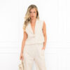 Deze top is verkrijgbaar in vier kleuren, zodat je eindeloos kunt combineren. Of je nu kiest voor wit, zwart, beige of geel met onze Joy top zit je altijd goed.