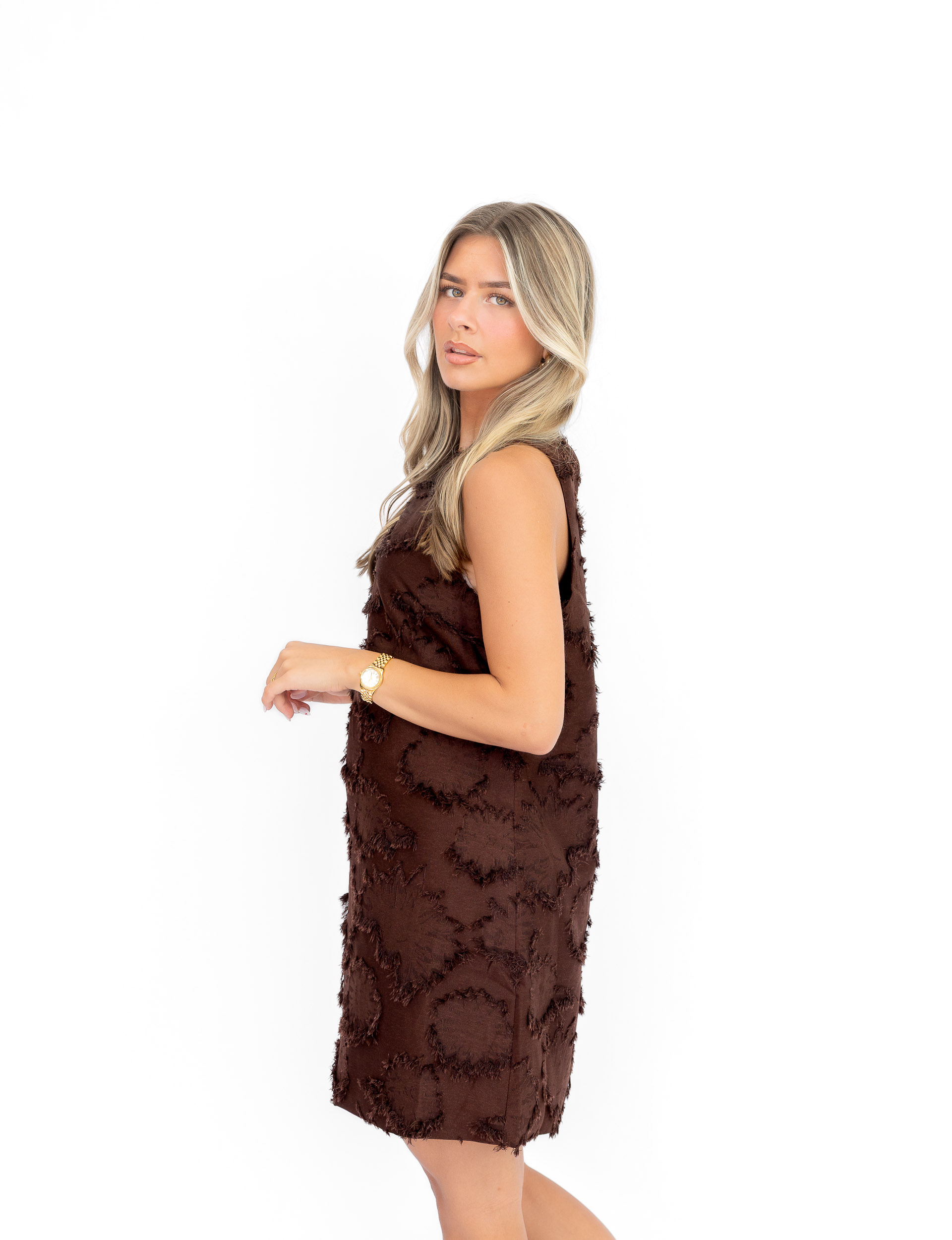 De Karlijn Jurk in bruin is de perfecte balans tussen comfortabel en stijlvol! Deze mouwloze jurk heeft een relaxed, losvallend model en een unieke print die je look meteen een upgrade geeft. De jurk sluit met een rits en een knoop, wat zorgt voor een flattering pasvorm die je taille subtiel accentueert. Verkrijgbaar in twee prachtige kleuren, deze jurk is ideaal voor een zomerse dag, een brunch met vriendinnen, of een avond uit. Combineer met een paar sandalen of sneakers voor de ultieme laid-back, maar chique look.