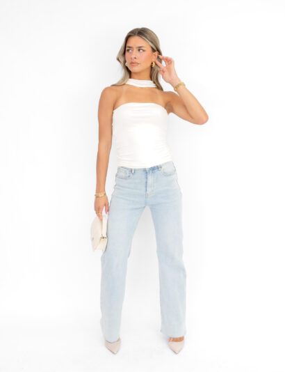 De Lana halter top in wit is dé zomerhit die je niet wilt missen! Deze superzachte, elastische bandeau top heeft een opvallend halsdetail voor net dat beetje extra flair. Verkrijgbaar in twee kleuren, perfect om te mixen & matchen met je favoriete high-waisted jeans of een short. Of je nu naar een festival gaat of een dagje uit, deze top geeft je look een frisse, chique vibe. Comfortabel, trendy en oh zo easy to style. De perfecte aanvulling voor jouw garderobe!