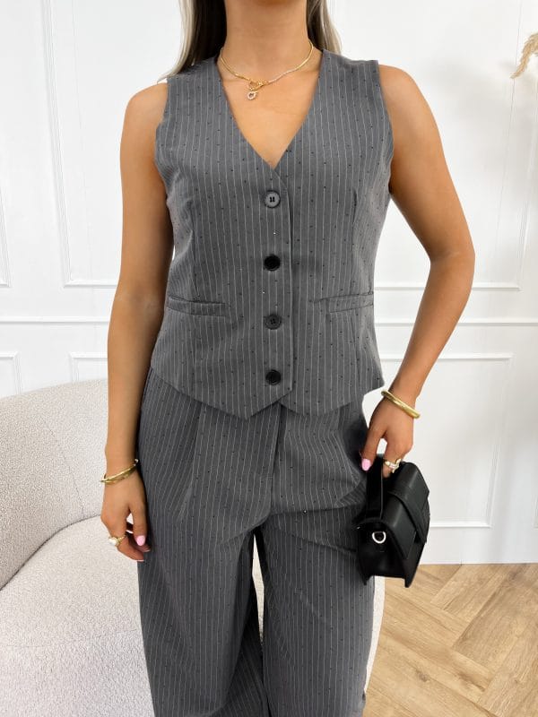 Liane strass gilet grijs