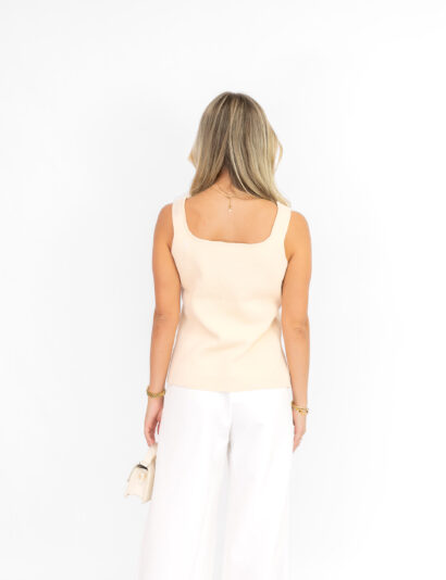 De Lyona top in beige is de perfecte mix van comfortabel en chique! Deze top heeft bredere bandjes voor extra draagcomfort en een unieke uitstraling. De gouden knopen aan de voorkant geven de top net dat beetje extra glam, zodat je een subtiele luxe vibe heb. Verkrijgbaar in drie kleuren bruin, beige. wit en zwart. Zodat je eindeloos kunt variëren met je outfits. Perfect te combineren met een high-waisted broek of een cute mini-rok voor een ongedwongen, maar toch chique look.