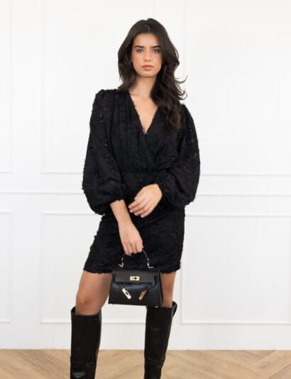 Het model is 1.63 m en draagt maat S, draagt normaal gesproken maat XS.