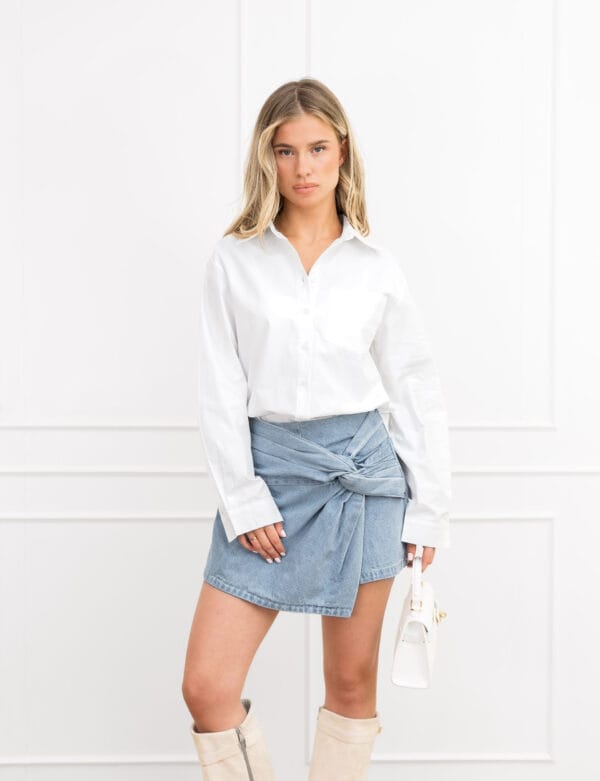 Het model is 1.63 m en draagt maat S, draagt normaal gesproken maat XS.
