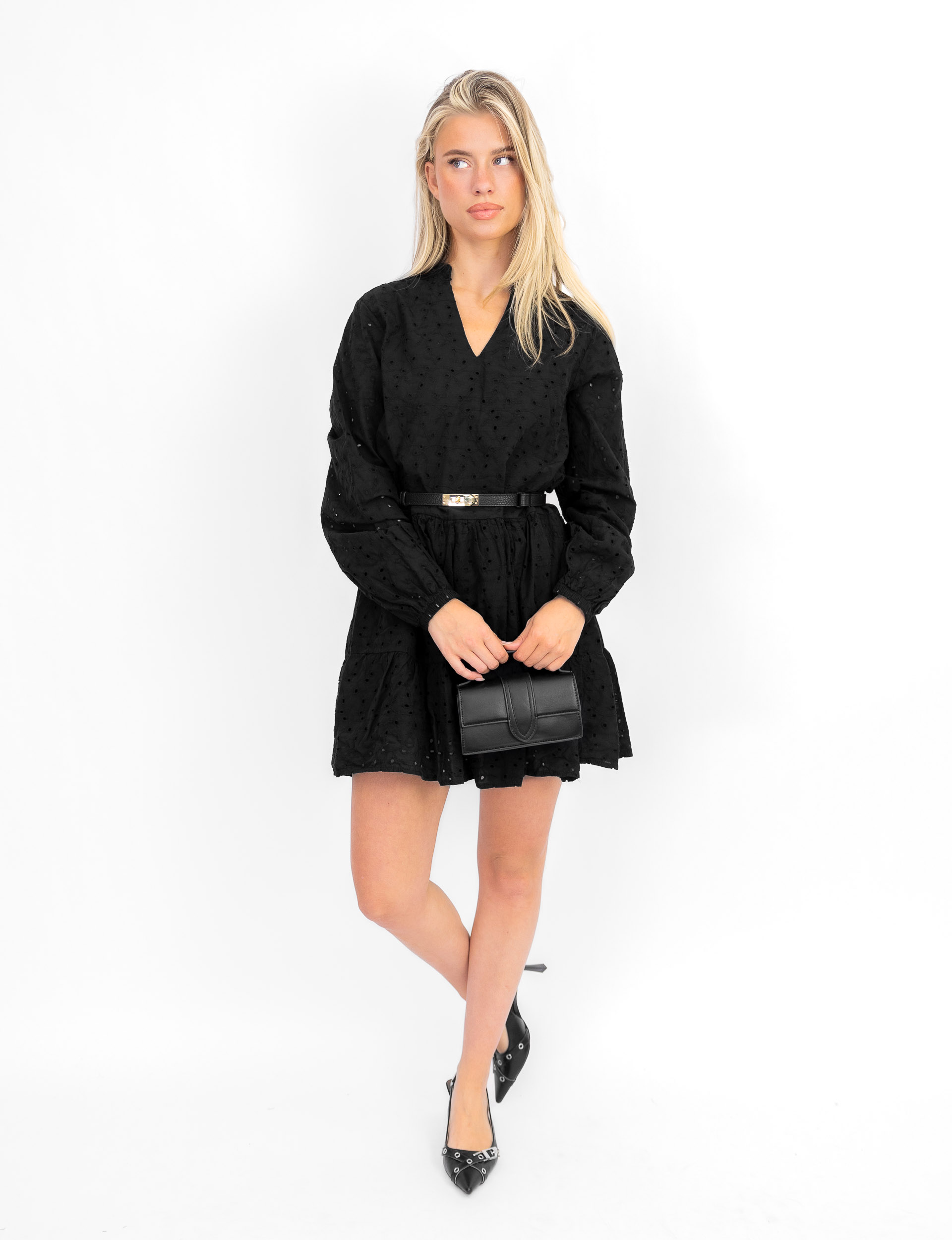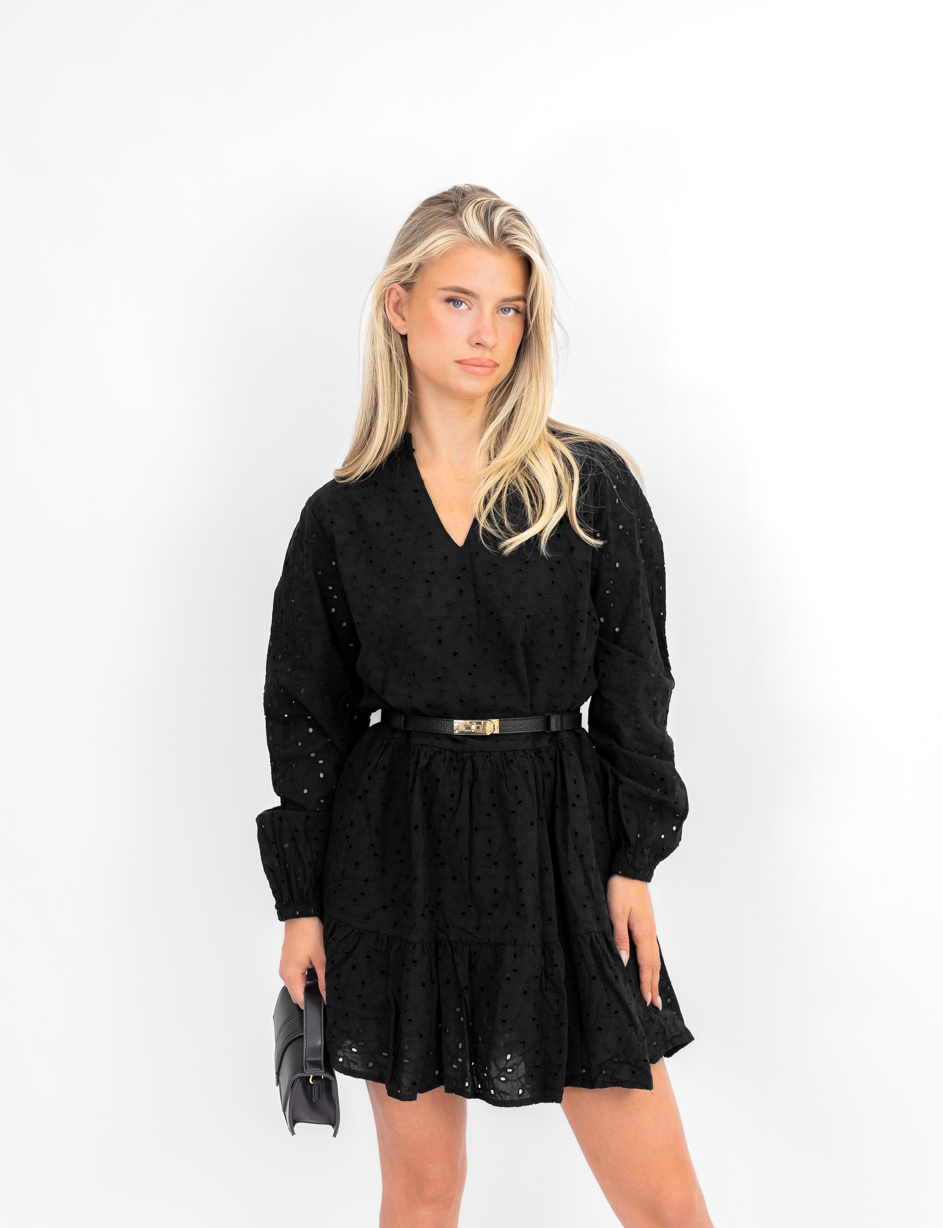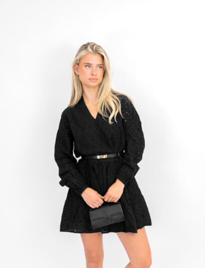Onze Nura jurk van ons eigen label shop je in 2 kleuren online. Het broderie jurkje is mega leuk te dragen met een riem rondom jouw taille. Let op het riempje is niet inbegrepen!