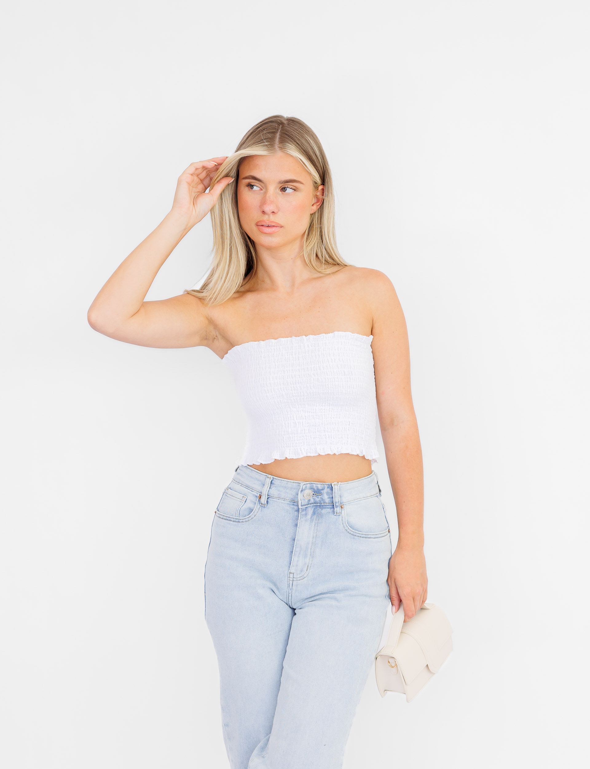 De bandeau top is gemeten als: lengte 23 cm en oksel tot oksel 31 cm.