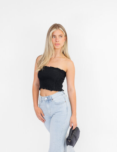 De bandeau top is gemeten als: lengte 23 cm en oksel tot oksel 31 cm.