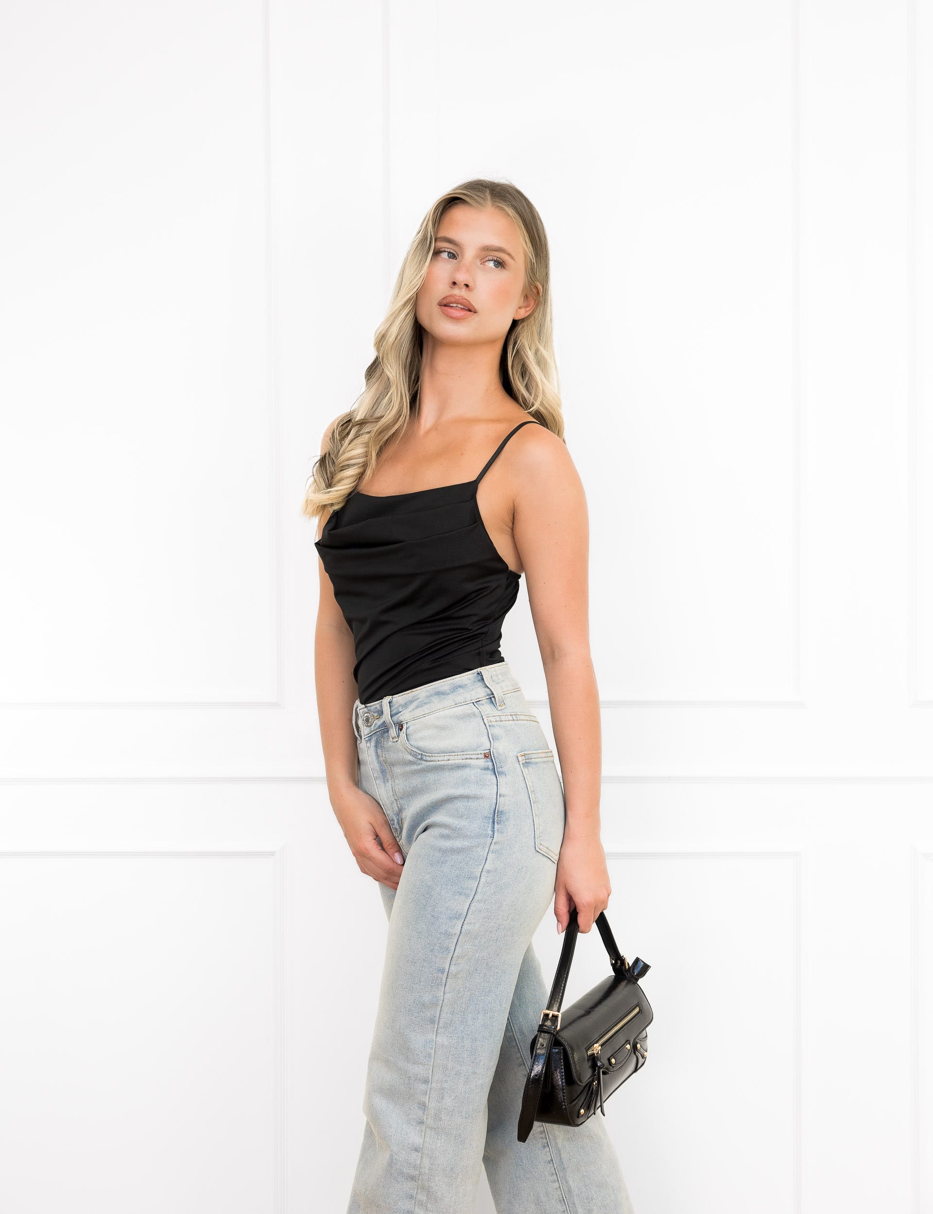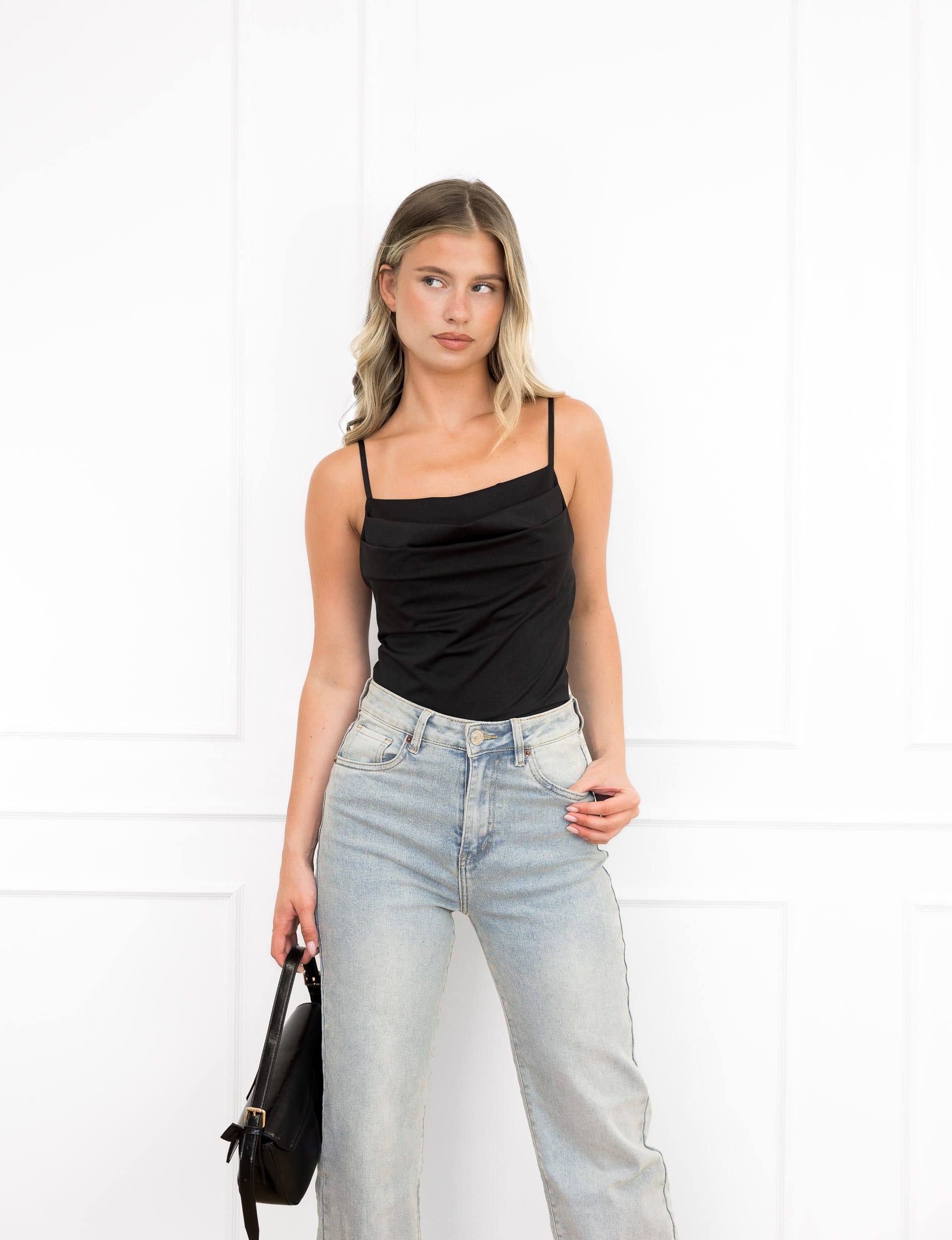De Rosan body zwart is een absolute must-have voor elke garderobe! Deze body heeft een superstijlvol waterval detail aan de voorkant, waardoor hij net dat beetje extra flair krijgt. De body is de perfecte basic die je kunt combineren met alles – van een casual look tot een chique outfit voor een avondje uit. Met verstelbare spaghetti bandjes kun je de fit helemaal naar wens aanpassen. En het beste? De body is verkrijgbaar in vier trendy kleuren, zodat je altijd de juiste keuze hebt voor jouw stijl. Voeg de Rosan body zwart toe aan je collectie en creëer eindeloze, stijlvolle looks!