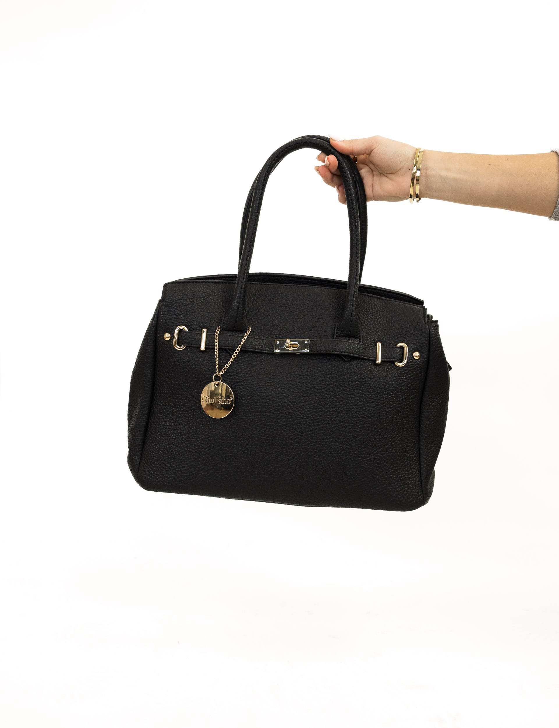 Deze handtas met gouden details is perfect voor dagelijks gebruik door het handige formaat. De tas is geschikt voor zowel werk als school en biedt voldoende ruimte voor al jouw daily essentials. Met het lange hengsel kun je de tas ook als crossbody dragen. Verkrijgbaar in zwart en bordeaux.