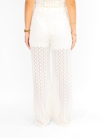 De Vienna broek in het creme is jouw nieuwe go-to voor de ultieme summer look! Deze trendy broek heeft een luchtige crochet look en is voorzien van een kort broekje aan de binnenkant, waardoor hij comfortabel zit én een subtiel doorschijnend effect heeft aan de onderkant. De stof is heerlijk stretchy, waardoor de broek perfect aansluit en comfortabel draagt, zelfs op warme dagen.