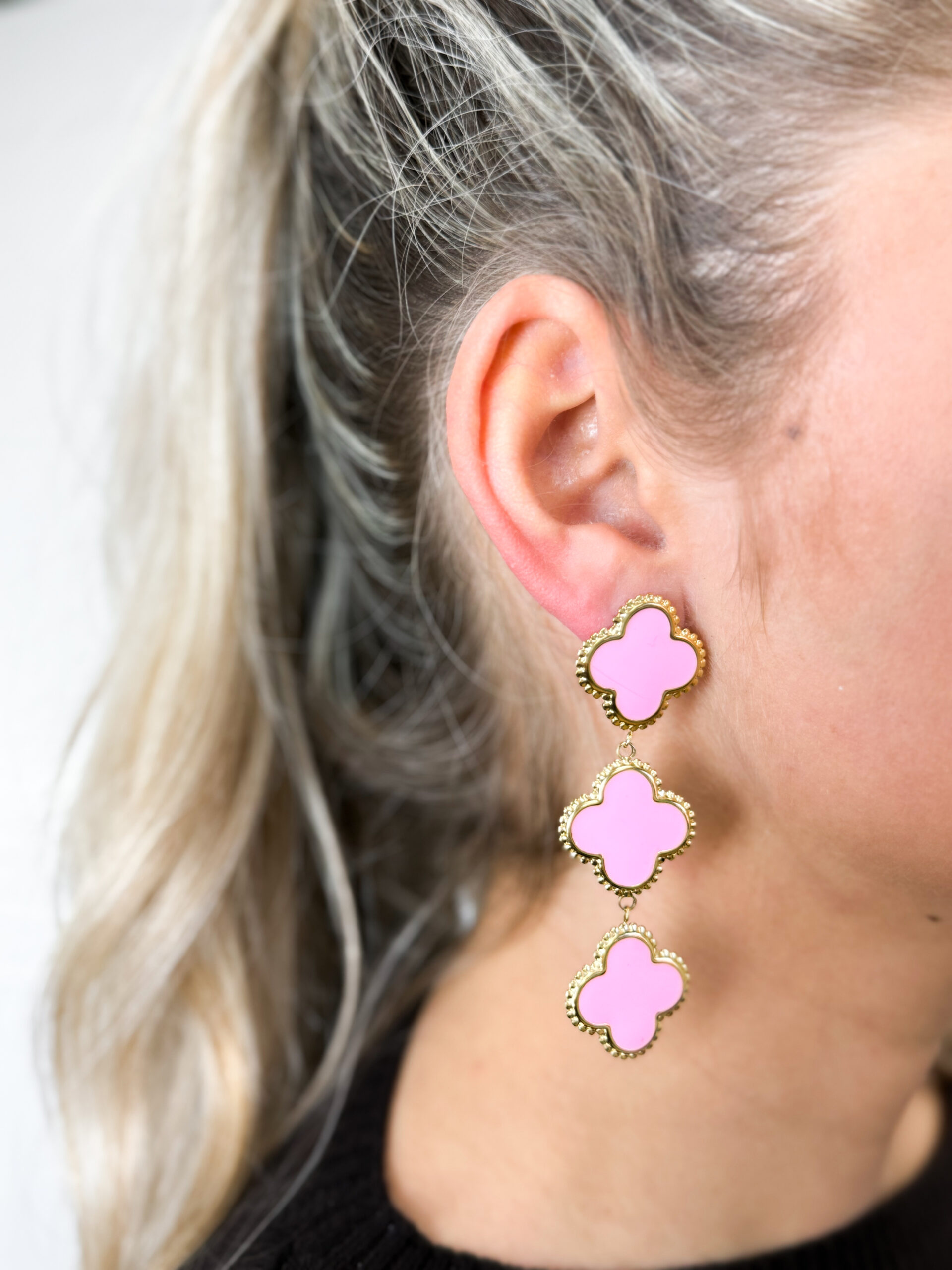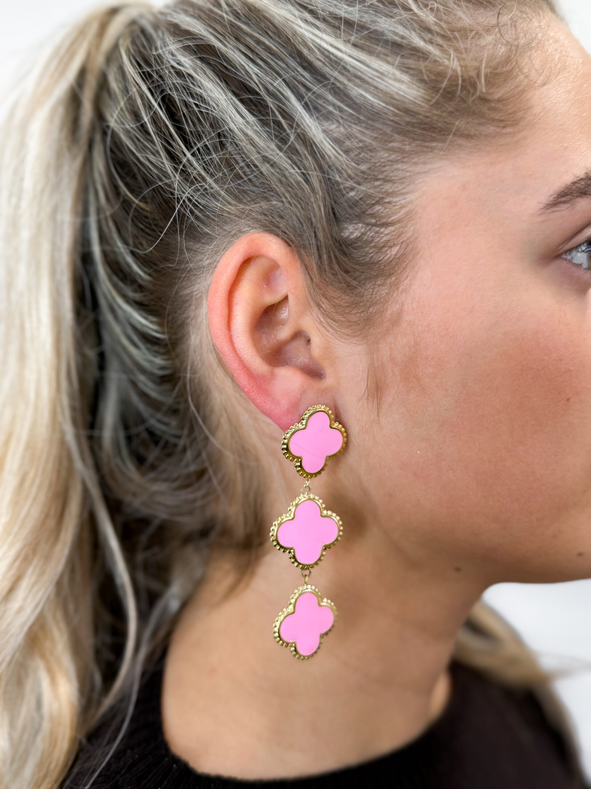 Klaver oorbellen roze