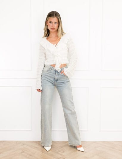 De top in maat M/L is gemeten als: lengte 42 cm en oksel tot oksel 45 cm.