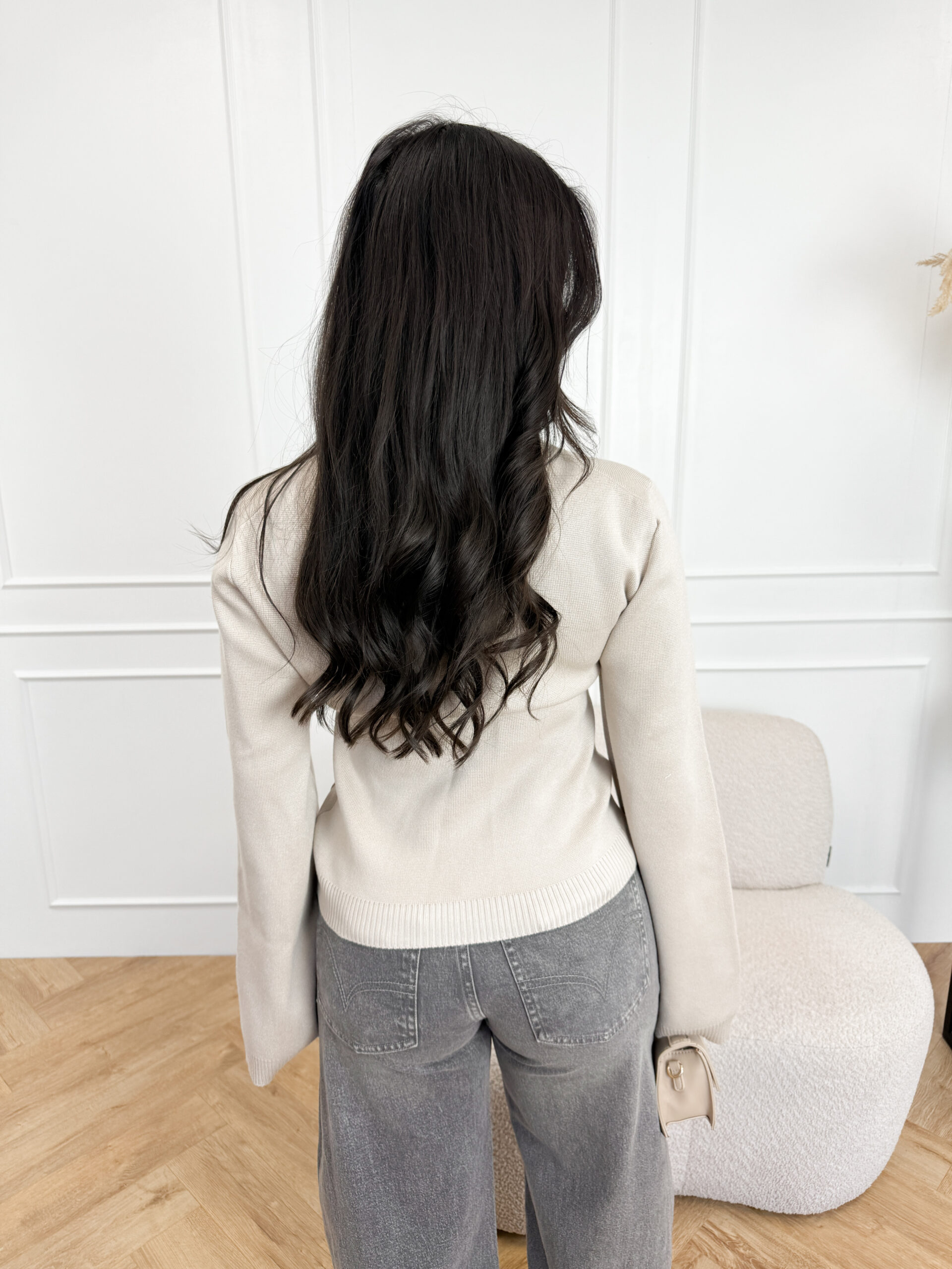 Het model is 1.63 m en draagt maat S/M.